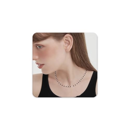 Elegant Boho Beaded Clavicle Chain Necklace for Women by LUXUkisskids, 18K Gold Plated Hypoallergenic 316L Stainless Steel Thin Chain Choker Necklaces, Summer Beach Vacation Jewelry (Black & Silver)