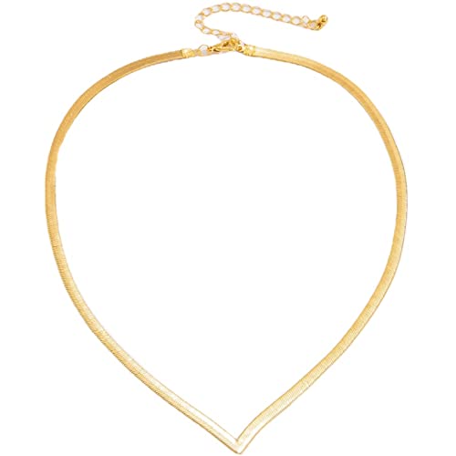 NALISASA 14K Gold Flat Snake Chain Choker Necklaces, Simple Minimalist V-Shaped Short Collar Clavicle Necklace Women Jewelry, Herringbone Necklace for Women