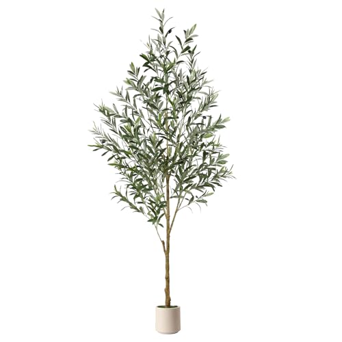 Alupssuc 6FT Artificial Olive Trees, Faux Silk Plant with Lively Artificial Trunk and Lifelike Fruits, Indoor Fake Potted Tree with White Planter for Modern Home Office Living Room Decor