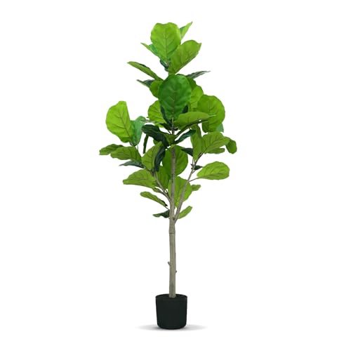 GarveeHome Artificial Fiddle Leaf Fig Tree - 6 ft Fake Plant with Black Nursery Planter, Large Fake Tree for Home or Office Decor - Artificial Plants Indoor Outdoor,Housewarming Gift