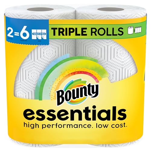 Bounty Essentials Select-A-Size Paper Towels, White, 2 Triple Rolls = 6 Regular Rolls