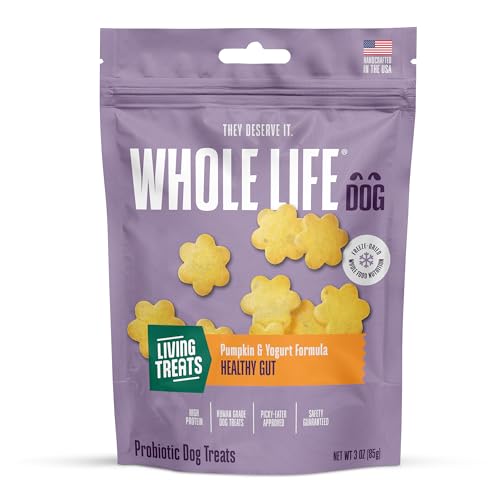 Whole Life Dog Living Treats for Dogs – Human Grade Probiotics for Digestive & Gut Health, Canine Gas, Diarrhea, Vomit & Constipation Relief - Pumpkin, 3 oz (Pack of 1)